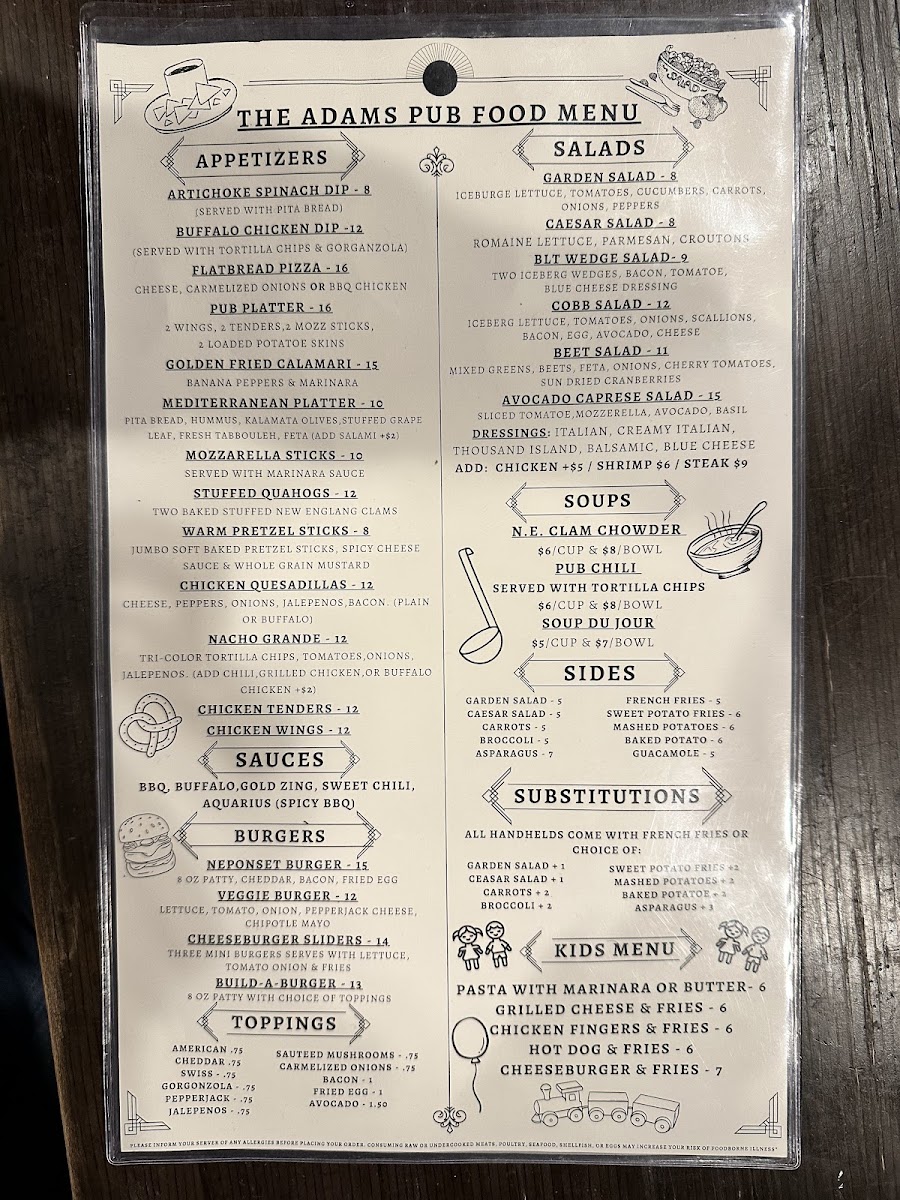 Diners rave about the friendly service and picturesque outdoor seating, making it a perfect place for relaxation. Whether you’re enjoying a casual lunch or a cozy dinner, the ambiance and delightful dishes transform every visit into a memorable experience at The Adams Pub.